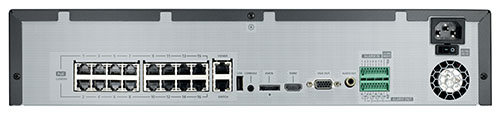 SRN-1673S: 16-канальный сетевой видеорегистратор с 16 портами PoE+, 80 Мбит - пропускная способность сети, четыре внутренних жестких диска и поддержка дисков E-SATA.
