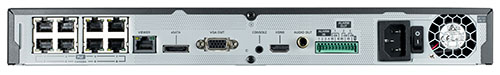 SRN-873S: 8-канальный видеорегистратор с 8 портами PoE+, полоса пропускания 64 Мбит, 2 внутренних жестких диска и поддержка E-SATA.