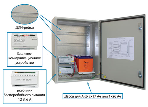 - источник бесперебойного питания 12 В, 6 А — SKAT-12-6,0 DIN