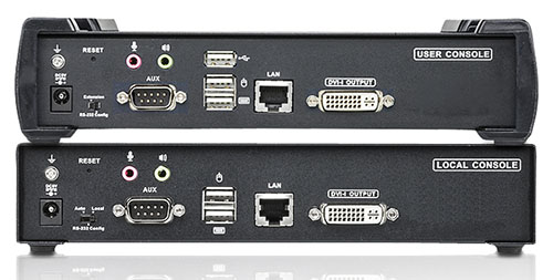 DVI KVM-удлинитель с доступом через IP состоит из блока передатчика, который подключается к компьютеру и блока приемника, обеспечивающего консольный доступ в отдельно-расположенном месте. Доступ к удаленному компьютеру с удаленной консоли осуществляется с использованием стандартного для TCP/IP сети кабеля Cat.5e, что позволяет выполнять администрирование по принципам «point-to-point», «point-to-multipoint» и «multipoint-to-multipoint». Это идеальный вариант для использования в конфигурациях любого типа, когда необходимо разместить консоль, там где это удобно, и Вы хотели бы, чтобы компьютер находился в безопасном месте - подальше от используемых клавиатуры, мыши и дисплея. Как матричный удлинитель устройство способно обеспечить единичные и множественные подключения, такие как: computers-to-consoles в нескольких вариантах; «one-to-one» (в режиме удлинителя), «one-to-one» (в режиме разделения), «many-to-one» (в режиме переключатель) или «many-to-many» (в матричном режиме).