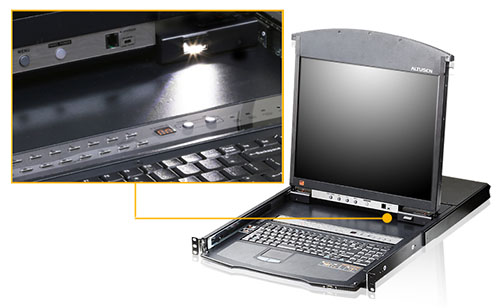 KL1508AiM - 8-ми портовый IP KVM Переключатель (IP KVM switch) с подключением по кабелю Cat5, интегрированный с KVM-консолью с 17-ти дюймовым LCD монитором Dual Rail с эксклюзивной светодиодной подсветкой, обеспечивает безопасный доступ к 8 компьютерам с одной консоли KVM.Поскольку в качестве протокола связи переключателя используется TCP/IP, доступ к KL1508AiM может осуществляться с любого компьютера в локальной, глобальной сети или Интернете – будь это компьютер в соседней комнате, на другой улице или в другой части мира.