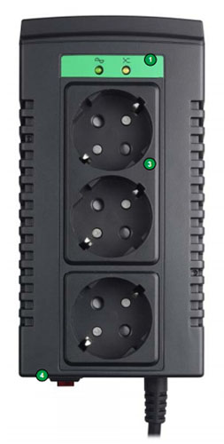 Стабилизаторы APC Line-R прекрасно подходят для защиты персональных компьютеров, телевизоров, газовых котлов и другой маломощной техники, требующей качественного электропитания. Линейка включает в себя модели мощностью 595, 1000 и 1500 ВА (300, 500 и 750 Вт соответственно), отличающиеся компактными размерами (180x95x119 мм), эргономичным дизайном и отсутствием шума во время работы. Масса устройств невелика и составляет 1.36, 1.60 или 1.96 кг в зависимости от мощности стабилизатора. Все модели способны работать в широком диапазоне входного напряжения (184 — 284 В) и оснащены индикатором режима работы, а также тремя евророзетками, расположенными на верхней панели. На задней панели устройства размещен выключатель питания и кабель подключения к сети переменного тока.