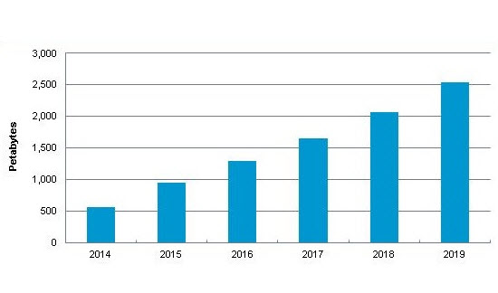 Всего два года назад установленные камеры видеонаблюдения генерировали 413 петабайт данных в день. Оценки показывают, что к концу 2019 года новые видеокамеры безопасности будут ежедневно генерировать более 2500 петабайт данных.