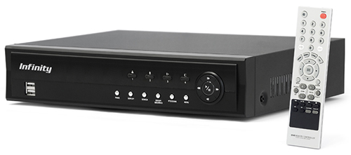 Видеорегистратор Infinity NDR-S3208TVI рассчитан на работу с восемью камерами и может содержать до четырёх жёстких дисков ёмкостью по 4 Тбайт. Предусматривается расширение объёма дискового пространства до 32 Тбайт посредством подключения внешних накопителей через порты e-SATA. Для подключения датчиков охранной сигнализации служат восемь тревожных входов, исполнительных устройств — четыре тревожных выхода.