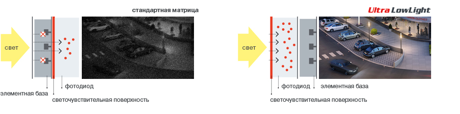 Ничто не препятствует прохождению света, и чувствительность сенсора повышается в разы.