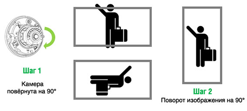 Обычное расположение камеры видеонаблюдения означает, что кадр формата 3:4 или 9:16 вытянут в горизонтальном направлении. Такая конфигурация более естественна и привычна для человека, которому предстоит смотреть это изображение. Однако в случае, когда необходимо с помощью отдельной камеры взять под наблюдение входную дверь, относительно узкий коридор или любое место, в котором ставится задача снимать проходящих людей в полный рост, в традиционном широком кадре ненужными оказываются значительные участки по краям. Тем не менее, изображение этих участков вносит вклад в объём изображения, которое передаётся по сети и записывается на диск.