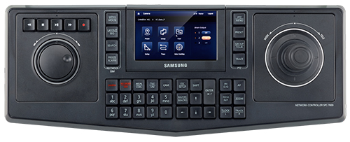 Одним из новых продуктов компании Hanwha Techwin является сетевой пульт управления Samsung SPC-7000. Он позволяет управлять PTZ-камерами видеонаблюдения — одновременно и сетевыми, и аналоговыми. Поворотные камеры подключаются к пульту не только напрямую, но и через сетевой или аналоговый видеорегистратор, а также через программное обеспечение SSM (Samsung Security Manager) или Samsung Smart Viewer.
