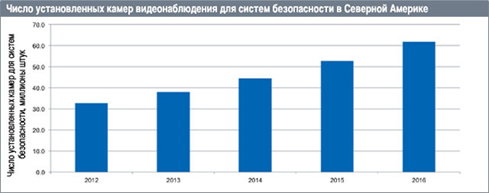 Количество камер видеонаблюдения, установленных в Северной Америке, к концу 2016 года достигнет 62 млн. Такой прогноз даёт исследовательская компания IHS Markit. В 2012 году их число составляло 33 млн. Специалисты компании отмечают, что, наряду с численным ростом, меняется и соотношение между количеством камер разных видов.