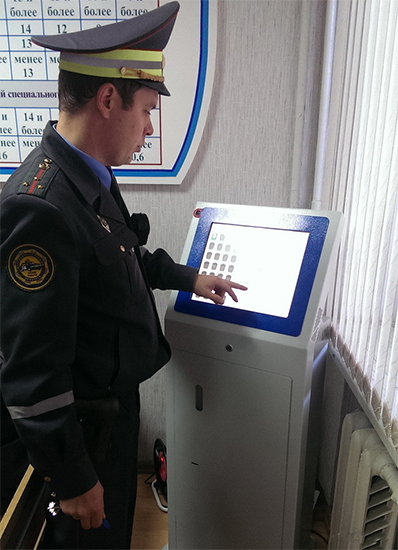 Между дежурствами регистраторы подключаются к терминалу для архивирования и хранения информации. Терминал внешне похож на инфокиоск, снабжен сенсорным экраном и собственной камерой. Фактически это компьютер с несколькими жесткими дисками общей емкостью 82 терабайта. Введя пароль или воспользовавшись чипом, сотрудник, в идеале, может получить доступ к своему персональному «Дозору», можно просмотреть и скопировать запись на съемный носитель. Здесь же происходит зарядка, одновременно можно подключить 28 приборов. Кроме того, «шкафчик» делает и сохраняет снимок того, кто его открыл.