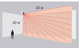 - точное обнаружение нарушителей и предметов в пределах области 20 х 20 м (угол расхождения – 95°)