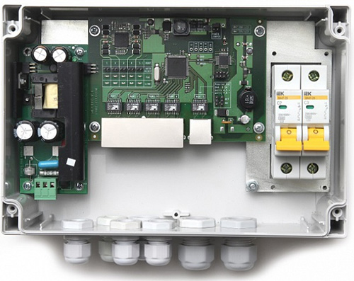 Удаленное расположение видеокамер и невозможность прокладки кабельных линий обусловили выбор коммутационного оборудования: коммутаторов TFortis PSW-1-45-WiFi с подключенными к ним точками доступа Ubiquiti NanoBeam M2. С помощью радиомостов коммутаторы TFortis PSW-1-45-WiFi по топологии «звезда» соединены с центральным коммутатором TFortis SWU-16, к которому по оптоволоконному кабелю подключены видеосерверы.