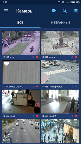 - Миниатюры (превью) всех доступных камер.