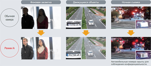 Режим Intelligent Auto для оптимизации качества изображения в зависимости от окружающих условий выбирает один из трех вариантов настроек камеры: «Фоновая засветка», «Движущиеся объекты», «Ночная съемка».