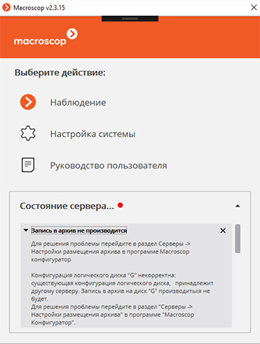 - Macroscop научился проводить самодиагностику. Функция предназначена для выявления возможных проблем в системе в автоматическом режиме. Пользователи будут получать уведомления, благодаря которым смогут вовремя узнать и самостоятельно решить возникшие проблемы и неполадки.