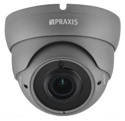 Первая модель, купольная видеокамера Praxis PP-7111MHD 2.8, обладает разрешением 1920х1080. Она оснащается объективом с фиксированным фокусным расстоянием и предназначена для работы в помещениях. Новинка построена на CMOS матрице Sony. Благодаря высокой чувствительности, 0.001 Лк, камера формирует четкое изображение при слабой освещенности. Цифровое расширение динамического диапазона выравнивает контрастность ярких и затененных участков, одновременно присутствующих в кадре. Автоматический баланс белого поддерживает стабильность цветов при смене источников освещения. Автоматическая регулировка усиления компенсирует затухание сигнала на длинных линиях. В ночное время наблюдать за обстановкой помогает ИК-подсветка дальностью 20 м.