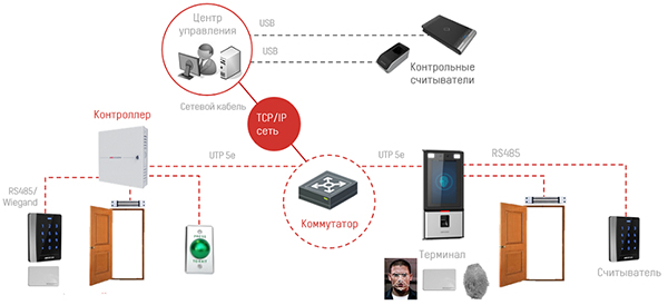 Виртуальное управление системой доступа особенно актуально для больших объектов, поскольку добавление нового устройства в локальную сеть не вызывает сложностей. При этом система может быть распределенной и объединять сразу несколько зданий, а также работать совместно с другими элементами системы безопасности на объекте – видеонаблюдением, охранной сигнализацией, домофонией. В случае с крупными проектами система контроля доступа уже предполагает использование контроллеров.