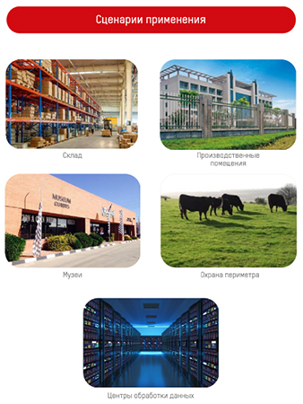 Основная сфера применения новых тепловизоров – предотвращение возгораний на небольших объектах, в складских и других помещениях, где необходимо обеспечить сохранность материальных ценностей. Тепловизоры также эффективно решают задачи по охране периметра, обнаружению человека и транспортных средств на расстоянии. Благодаря наличию двух объективов – оптического и тепловизионного – камера не только быстро оповещает о нештатных ситуациях на охраняемой территории, но и позволяет оператору проверить тревожную информацию с помощью оптического изображения.