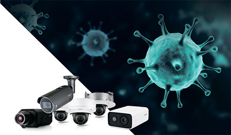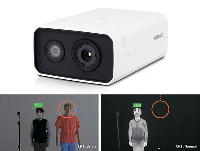 Камера для измерения температуры Wisenet TNM-3620TDY быстро обнаруживает человека с повышенной температурой тела, что может являться симптомом COVID-19.
