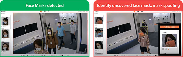 Приложение Face Mask Detection автоматически, в реальном времени, проверяет, носит ли человек, попавший в кадр, маску на лице. Оно работает совместно с ПО для управления видеонаблюдением Wisenet SSM и Wisenet WAVE. Приложение с помощью искусственного интеллекта постоянно анализирует видеоизображение с камер, работающих под управлением этого ПО.