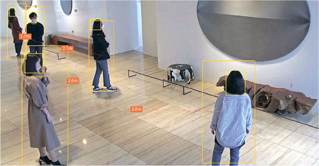 В камерах видеонаблюдения Wisenet серии P, которые выпускает компания Hanwha Techwin, одной из функций, основанных на искусственном интеллекте, является проверка соблюдения людьми требований поддержания социальной дистанции.