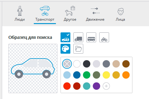 Транспортные средства можно искать по типу (легковые машины, грузовые машины, автобусы, двухколесные транспортные средства), цвету и фотообразцу.