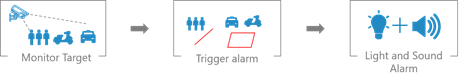 Теплый свет связан с функцией интеллектуального предотвращения вторжений. Когда упомянутая выше цель нарушает правила, срабатывает заметная световая и звуковая сигнализация для отпугивания подозрительной цели.