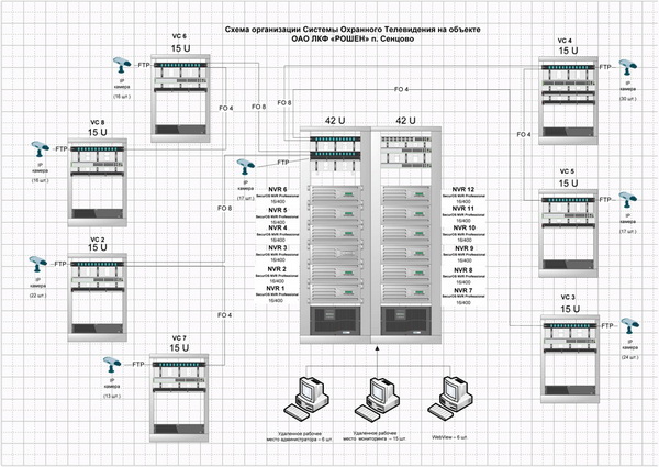 - оборудованы 6 удаленных рабочих мест администратора, 15 удаленных рабочих мест оператора и 6 пользовательских мест с возможность просматривать «живое» и архивное видео через Интернет;