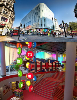 M&M World в Лондоне, принадлежащий группе компаний Mars Retail, - один из крупнейших кондитерских магазинов мира. Это четырехэтажное здание площадью почти 11 000 квадратных метров, посетители которого могут купить конфеты M&M и другие кондитерские изделия, а также такие фирменные товары, как мягкие игрушки, посуду, одежду, постельные принадлежности, ювелирные изделия и изделия из стекла. Первый в мире M&M World располагается на Leicester Square, его особенностью является гигантская стена из шоколада, где клиенты могут создавать свои собственные наборы M&M.