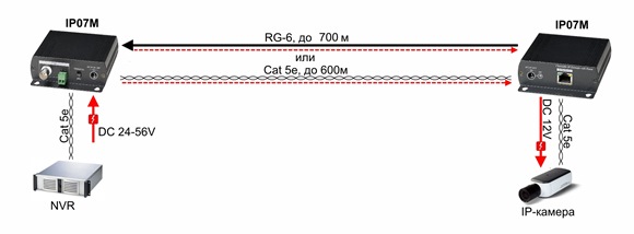 SC&T IP07M это каскадируемый удлинитель Ethernet и питания по любому двухжильному кабелю.