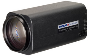 Моторизованные оптические устройства серии H27Z9535 марки Computar имеют диапазон фокусных расстояний 9,5-256,5 мм, фокальное число F3.5 и предназначены для работы с мегапиксельными камерами видеонаблюдения, использующими матрицы формата от 1/2 до 1/4 дюйма и крепление С-типа. Автодиафрагма моделей H27Z9535AM-MP и H27Z9535AMP-MP управляется видеосигналом, а трансфокаторы H27Z9535DC-MP и H27Z9535PDC-MP используют автодиафрагму DC-Iris. При установке на камеры с матрицей формата 1/2”, горизонтальный угол обзора может составлять от 37,4° до 1,42°. Каждый трансфокатор данной серии обеспечивает дистанционную настройку фокуса и степени масштабирования и позволяет камерам осуществлять видеосъемку объектов на расстоянии от 1,5 м с высоким уровнем детализации изображения и зумом до 27 крат. Наряду с этим, H27Z9535AMP-MP/PDC-MP поддерживают программируемые предустановки фокусировки и степени приближения.