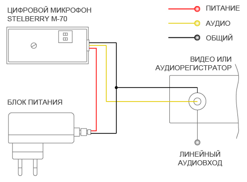 | Схема подключения микрофона STELBERRY M-70 к видеорегистратору |