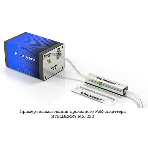 Проходной PoE-сплиттер STELBERRY MX-220 для коммутаторов и видеорегистраторов, работающих в стандартах 802.3af и 802.3at по методу B