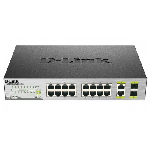 Коммутатор неуправляемый с 16 портами 10/100Base-TX, 2 комбо-портами 100/1000Base-T/SFP (16 портов PoE 802.3af, PoE-бюджет 246,4 Вт).