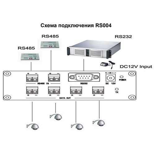 Подключение (вход / выход)    - вход: DB-9 (RS-232), клеммы (RS-485) х2, DC12V