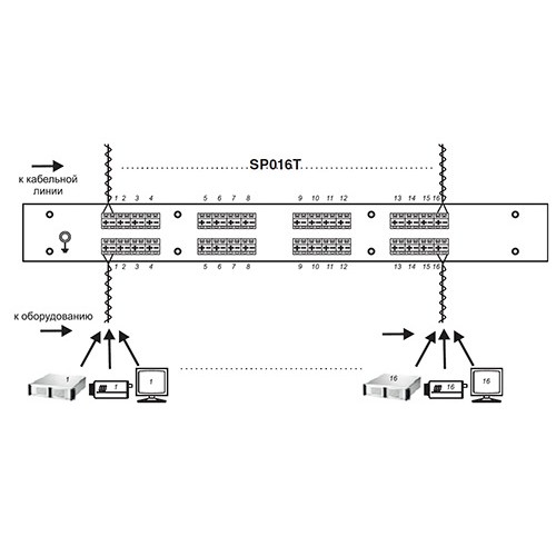 Многоканальное устройство грозозащиты SP016T предназначено для защиты цепей видеосигнала (неэкранированная витая пара CAT5) в системах видеонаблюдения от грозовых разрядов, высоковольтных импульсных наводок и сильных электромагнитных полей. Рекомендуется для защиты многоканальных приемопередатчиков и видеорегистраторов.