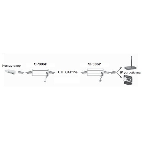 Устройство грозозащиты SP006P предназначено для защиты линий передачи данных (сетей Ethernet) и электропитания (PoE: питание по Ethernet) систем безопасности от скачков напряжения и грозовых разрядов.