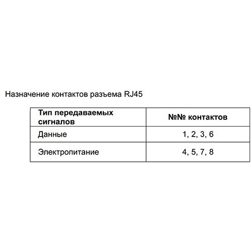 | Макс. напряжение линии передачи электропитания | 60 В (контакты - 4, 5, 7, 8) |