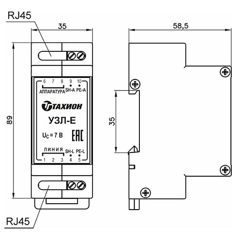 Конструктивно УЗЛ-Е выполнено в пластмассовом корпусе с креплением на 35мм DIN-рейку.