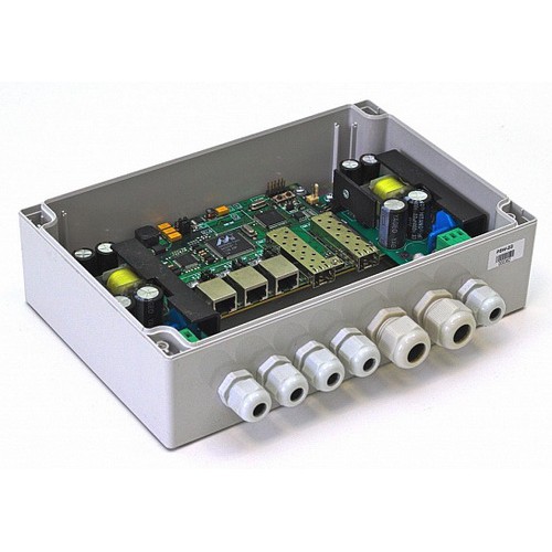 - управляемый коммутатор с двумя гигабитными SFP слотами, для организации протяженных участков передачи данных по оптике