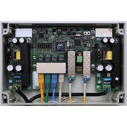 - управляемый коммутатор с двумя гигабитными SFP слотами, для организации протяженных участков передачи данных по оптике